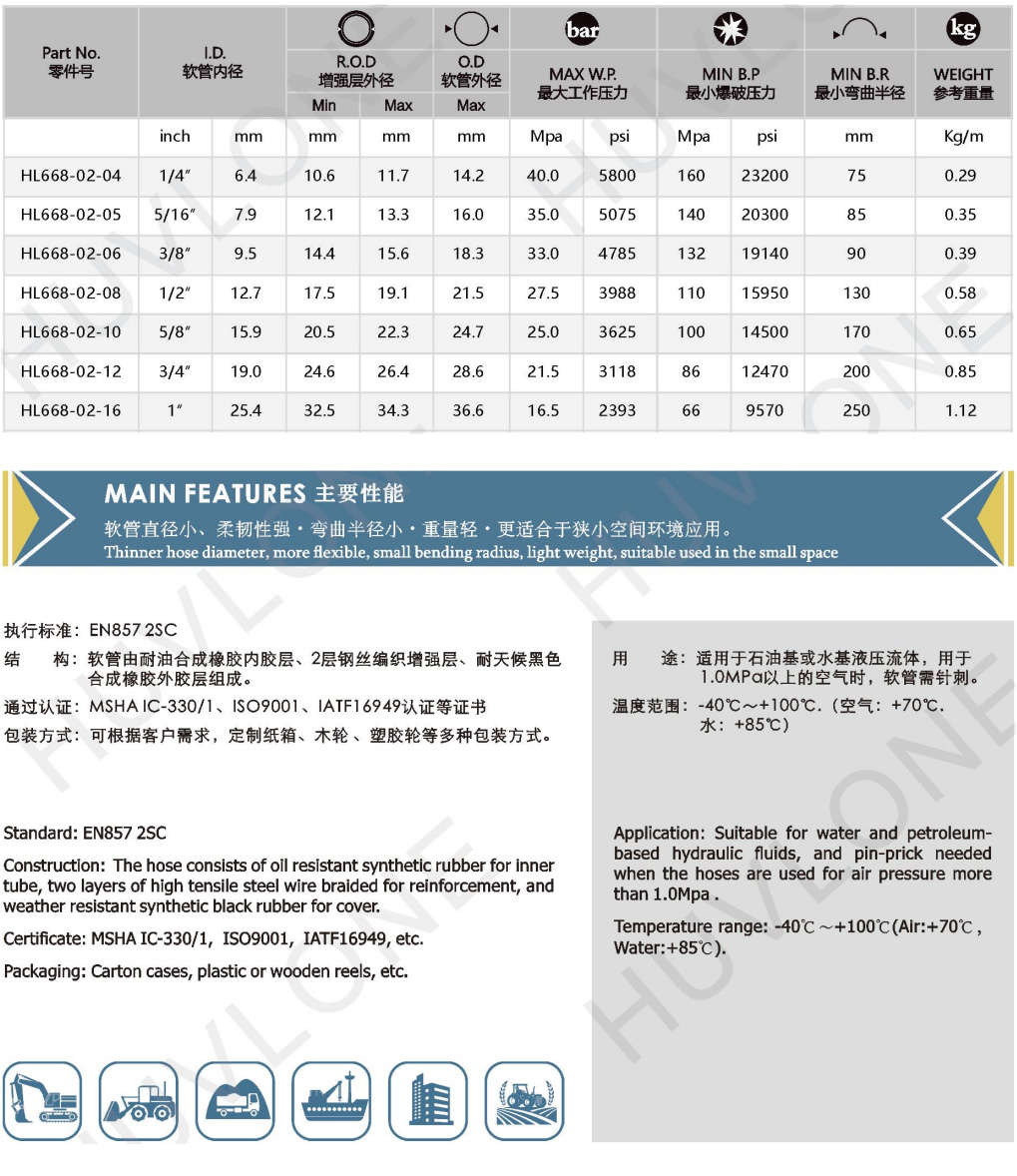 產(chǎn)品用途:適用于石油基或水基液壓流體,用于1.0MPa以上的空氣時(shí),軟管需針刺。