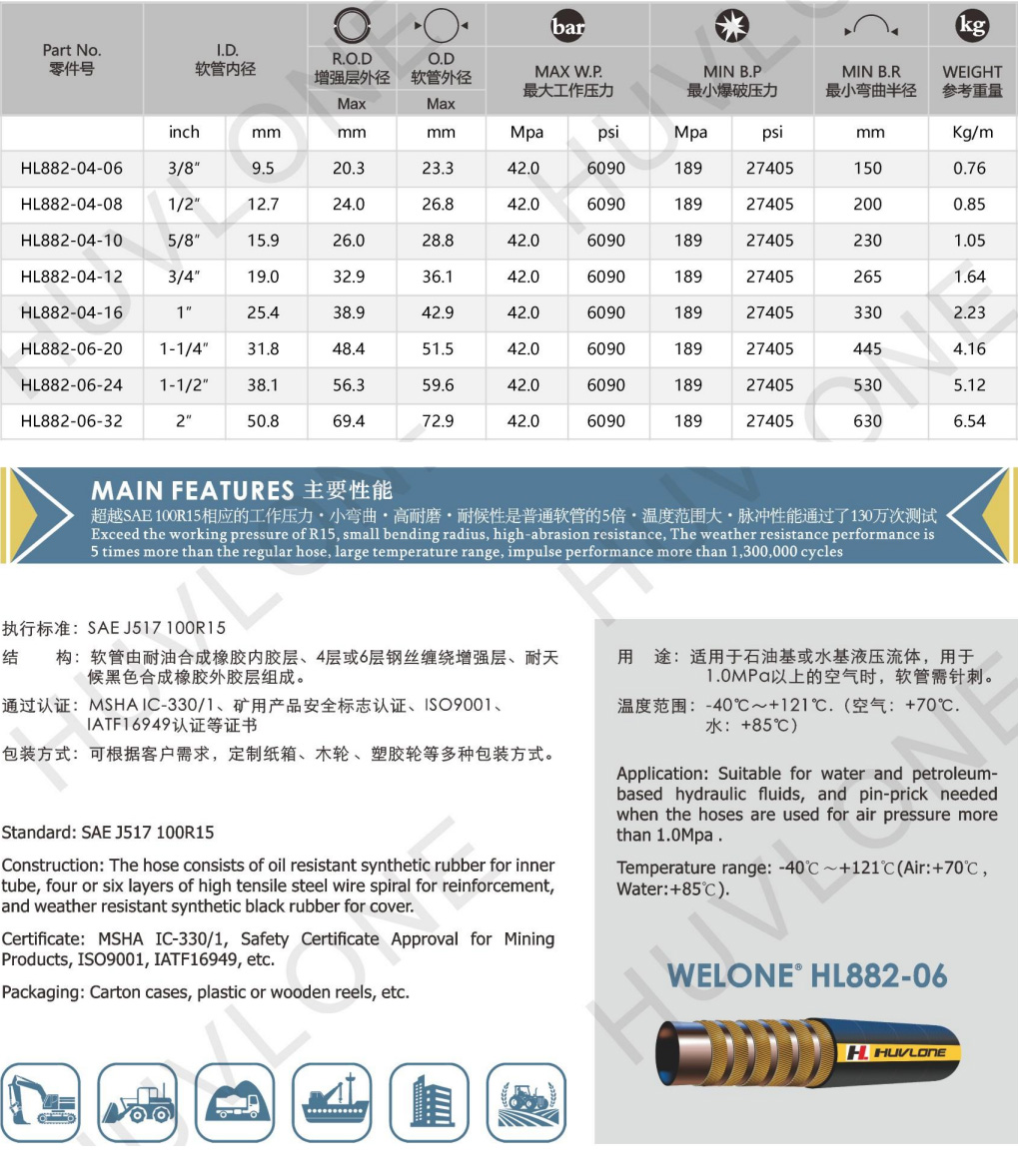 產(chǎn)品用途:適用于石油基或水基液壓流體,用于1.0MPa以上的空氣時(shí),軟管需針刺。