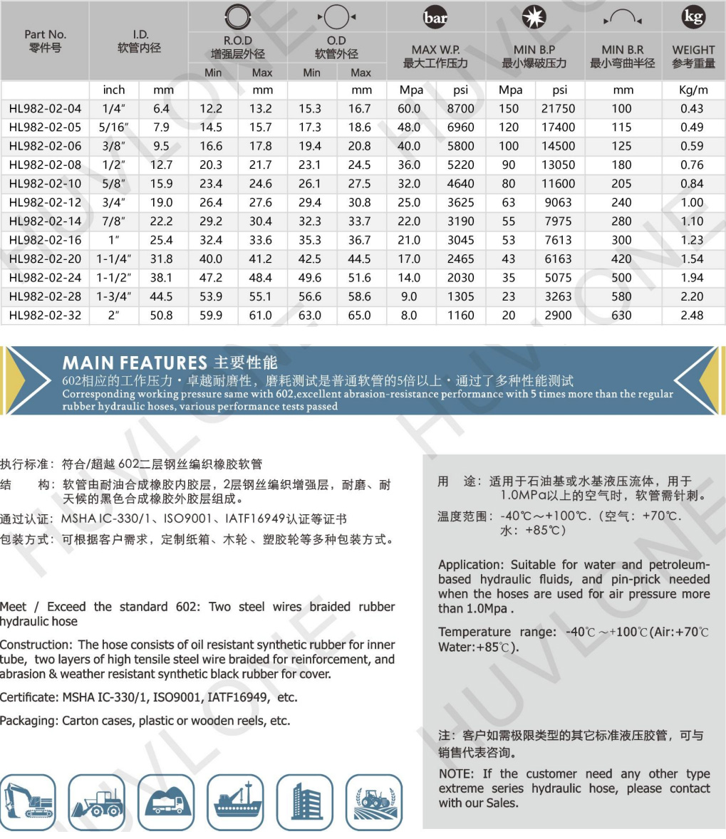 符合/超越602二層鋼絲編織耐磨橡膠軟管