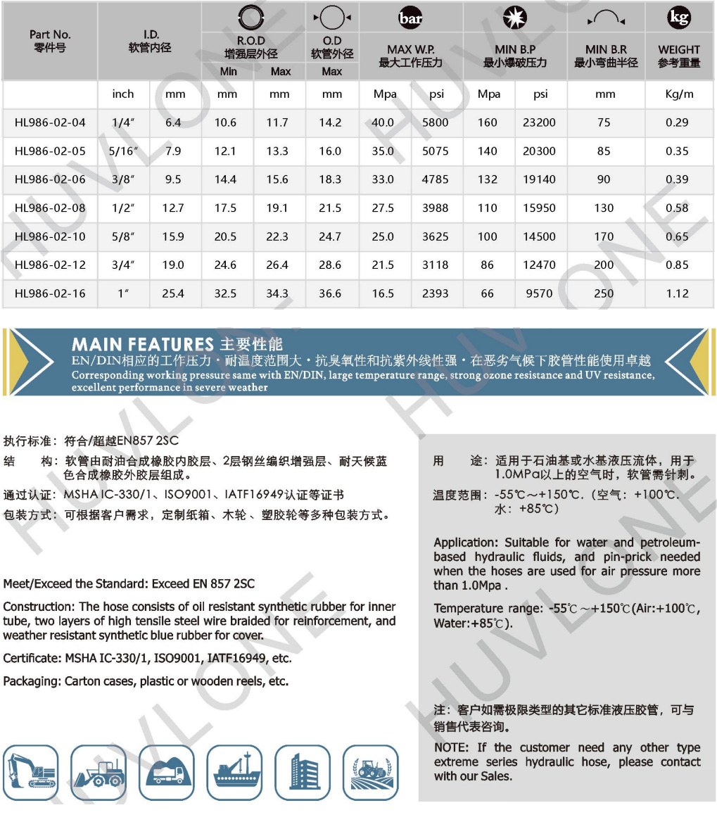 符合/超越DIN EN857二層鋼絲編織耐高低溫橡膠軟管