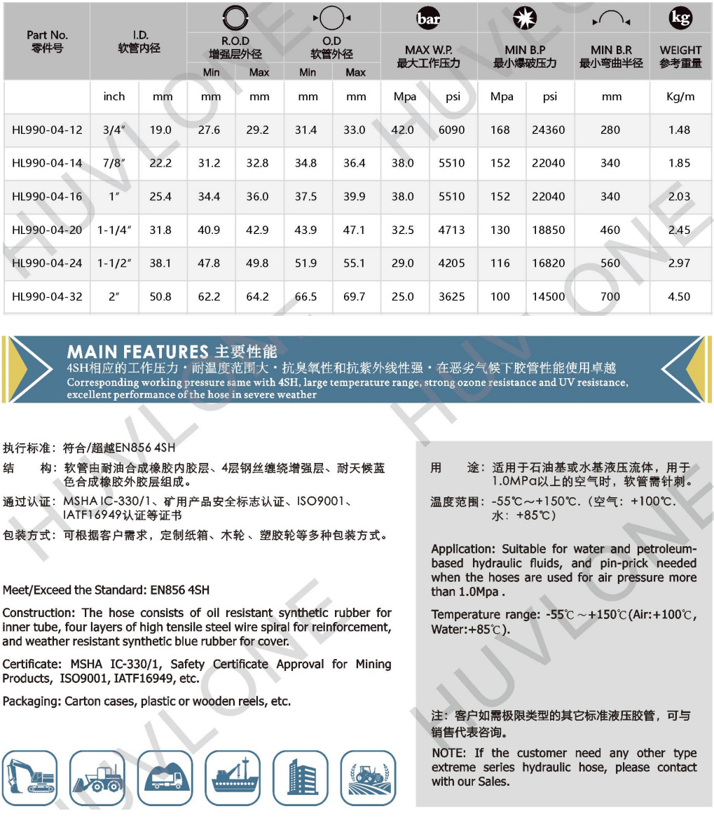 符合/超越DIN EN8564SH四層鋼絲纏繞耐高低溫橡膠軟管