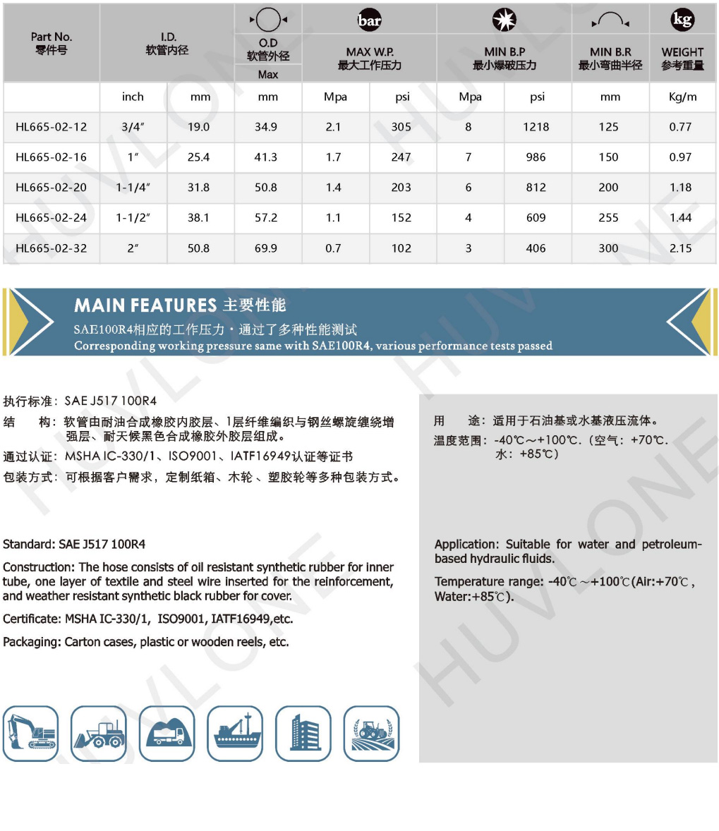 SAE J517 100R4: Steel wire inserted rubber hydraulic hose