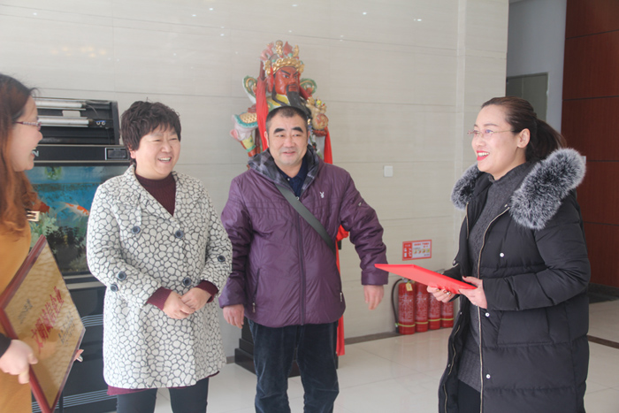 2017年2月24日上午10點(diǎn),漯河市工商局辦公室張主任、漯河經(jīng)濟(jì)開發(fā)區(qū)工商分局于局長及漯河經(jīng)濟(jì)開發(fā)區(qū)后謝鎮(zhèn)工商所劉所長一行來到公司,對匯龍液壓獲得“2016年度文明誠信企業(yè)”進(jìn)行授牌及表彰,公司總經(jīng)理趙會芳代表公司接受榮譽(yù)并合影留念。