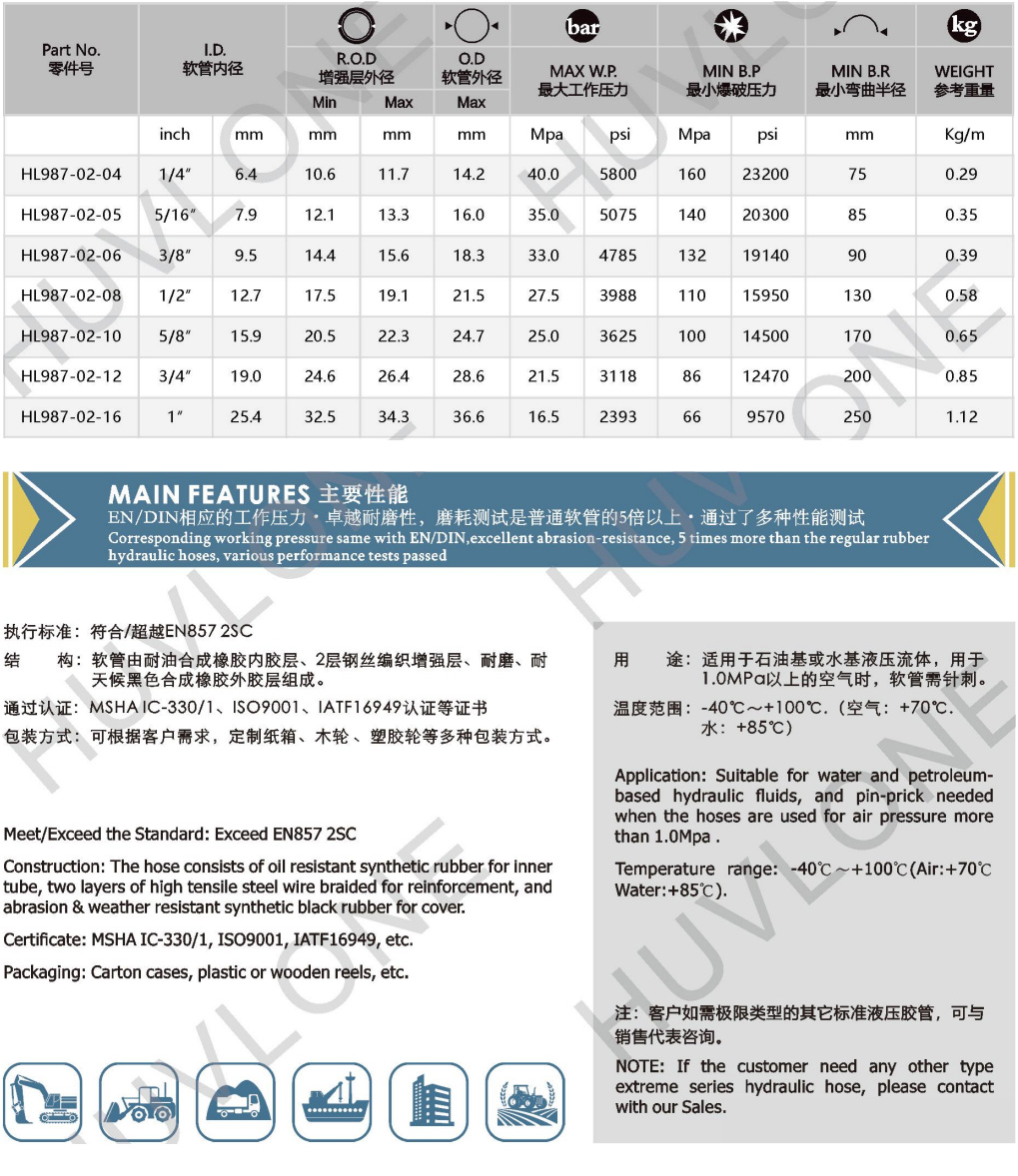 產(chǎn)品用途:適用于石油基或水基液壓流體,用于1.0MPa以上的空氣時(shí),軟管需針刺。